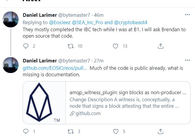 链捕手消息,今日BM在回复推特网友询问关于跨链通讯(IBC)相关消息时表示,“我在B1的时候他们基本上完成了IBC技术。我会让Brendan(BB)把代码开源。”随后,BM再次发推更新IBC代码,并称很多代码此前已开源。