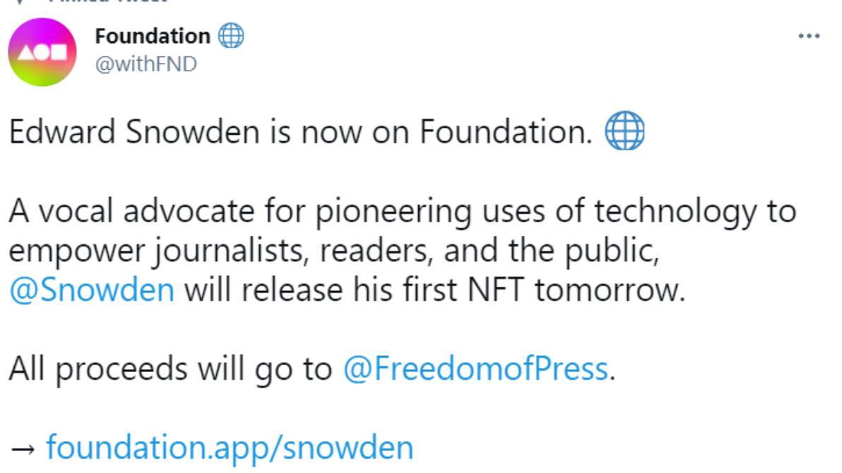 链捕手消息,据Foundation Twitter消息,棱镜门披露者、新闻自由基金会主席斯诺登(Edward Snowden)在 Foundation 平台发布首个 NFT“Stay Free”(保持自由)。