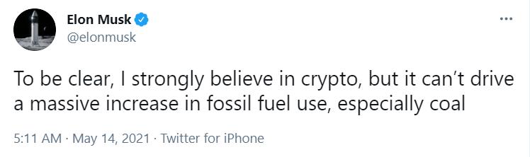 链捕手消息,特斯拉CEO埃隆·马斯克发推特称:“需要明确的是,我坚信加密货币,但比特币不可以推动化石燃料使用的大幅增加,尤其是煤炭。”