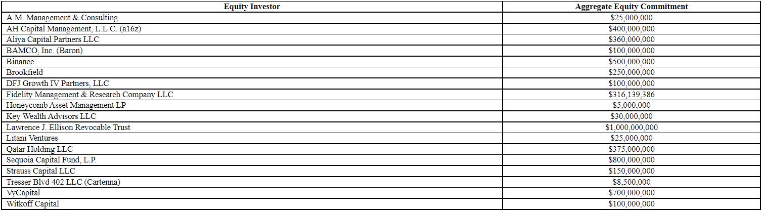 链捕手消息,在 SEC 公布的马斯克推特私有化的收购文件中,包含了一份“共同投资者”列表,表中显示Binance出资5亿美元参与股权收购,a16z出资4亿美元,甲骨文 CEO 通过其信托基金 Lawrence J. Ellison Revocable Trust 出资 10 亿美元,红杉资本出资 8 亿美元。