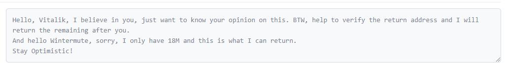 链捕手消息,据 Optimism 链上数据显示,2000 万枚 OP 丢失事件的黑客地址 0x60B28637879B5a09D21B68040020FFbf7dbA5107 向 Vitalik 钱包再次发送一笔交易,并留言称,“你好,Vitalik,我相信你,只是想知道你对此的看法。 顺便说一句,请帮助验证退货地址,我会在这之后退还剩余的 OP 代币。你好 Wintermute,对不起,我只有 1800 万枚 OP,这是我可以归还的。保持乐观!”