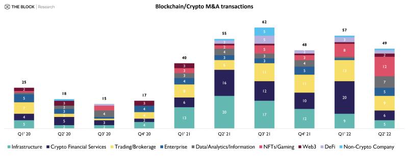 链捕手消息,据 The Block 报道,2022 年上半年 NFT 和 GameFi 领域共发生 20 起并购交易,而该领域有史以来总共发生 58 起并购交易。这说明该行业正在进入整合加速期。 此外,尽管近期 NFT 市场降温,但在 2022 年第二季度 NFT 领域的 12 笔并购交易数量创下历史新高。(The Block)