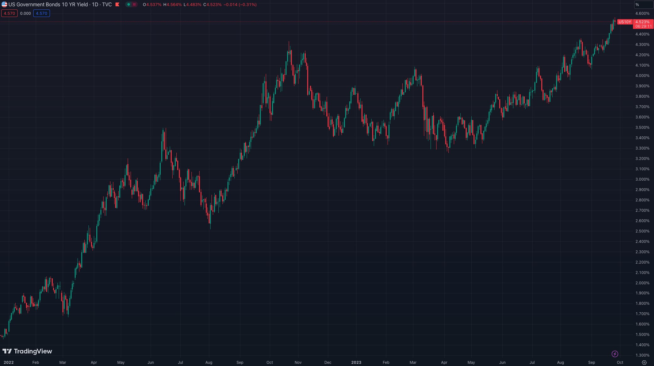 然而,对于加密市场而言,最关键的问题还是当前的高利率环境。近期10年期美国国债利率与美元指数双双回升,给风险资产带来较大的压力。在高利率、持续缩表的货币环境下,风险资产难有亮眼的表现。由于美国经济表现强劲,美联储抵抗通胀的决心依然坚定,降息尚需时日,美联储也许要到明年第三季度才会开始降息,投资者仍需保持谨慎和耐心。