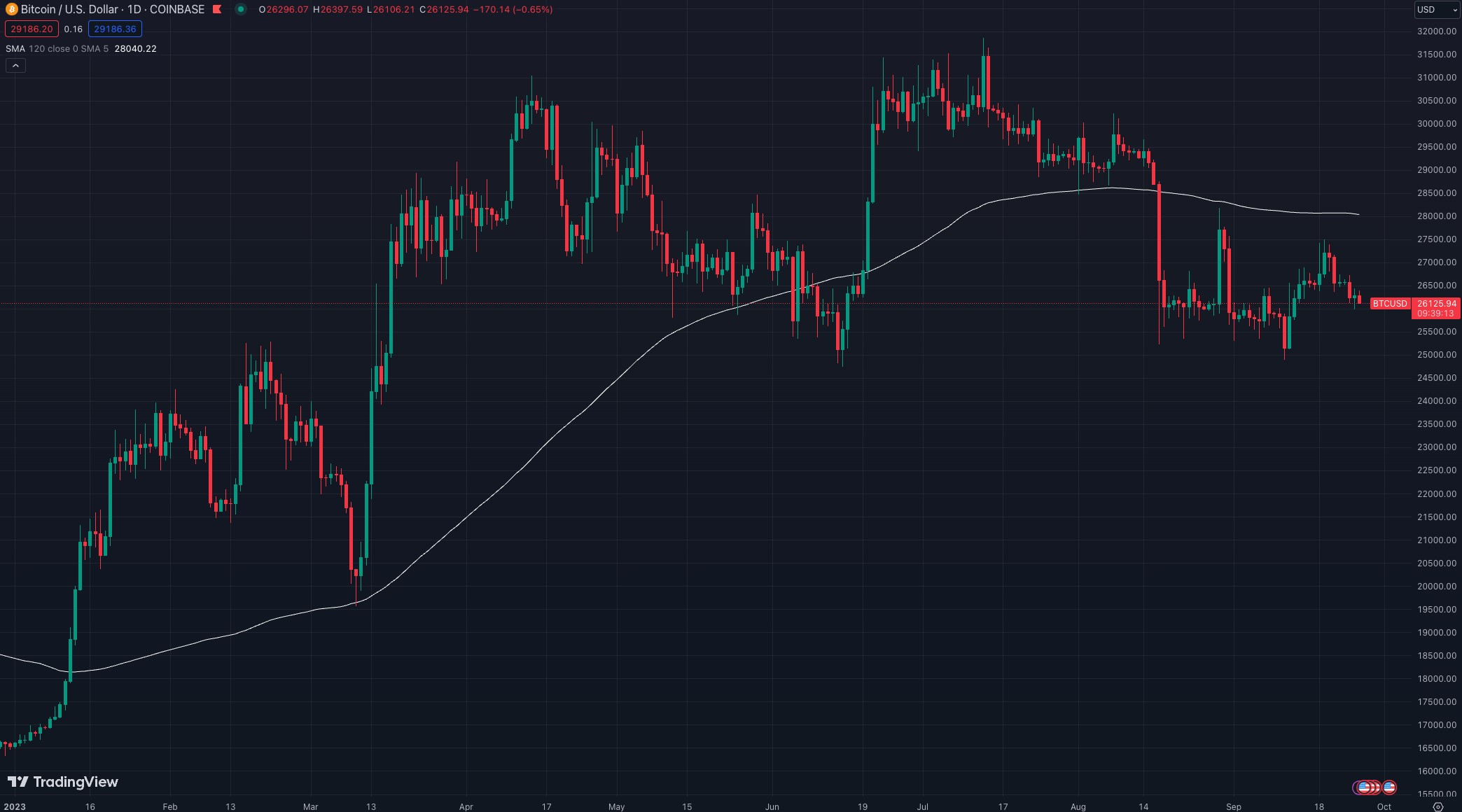 ETF叙事退潮,市场陷入僵局。比特币现货ETF的消息在6月底刺激了市场的上涨,但SEC在8月延期的决定则使得多头全面撤退。根据彭博分析师的判断,第一个最终截止日期是Ark的1月10日,SEC可能会将最终决定推迟到年末,距离现在还有3-4个月的时间,暂时难以成为推动市场上涨的因素。尽管Grayscale胜诉的消息在短时间内提振了市场,但BTC未能收回120日均线上方,仅仅2天后涨幅就被完全抹去,市场再度陷入僵局。
