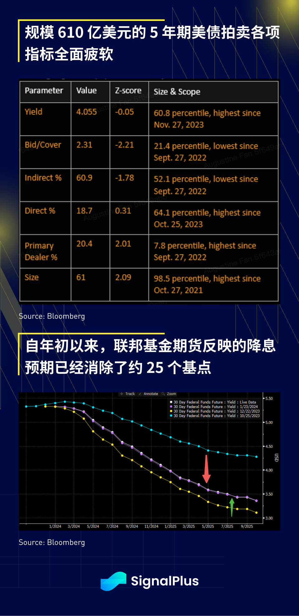 事实证明,规模 610 亿美元的 5 年期美债拍卖对市场来说难以消化,尾部 + 2 个基点,投标倍数 2.31 明显低于 2.52 的平均值,各项指标全面表现疲软,许多指标甚至接近 6 个月低点,拍卖结果推动收益率进一步上升 5 个基点;此外,年初以来,债券的下跌已经有效消除了约 25 个基点的降息预期,对于 2024 年降息的定价已从月初的 150 个基点下滑至 “仅剩” 125 个基点。