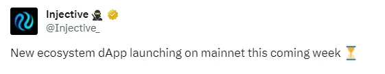 ChainCatcher 消息,公链 Injective 其宣布新生态系统 DApp 将于下周在主网推出。