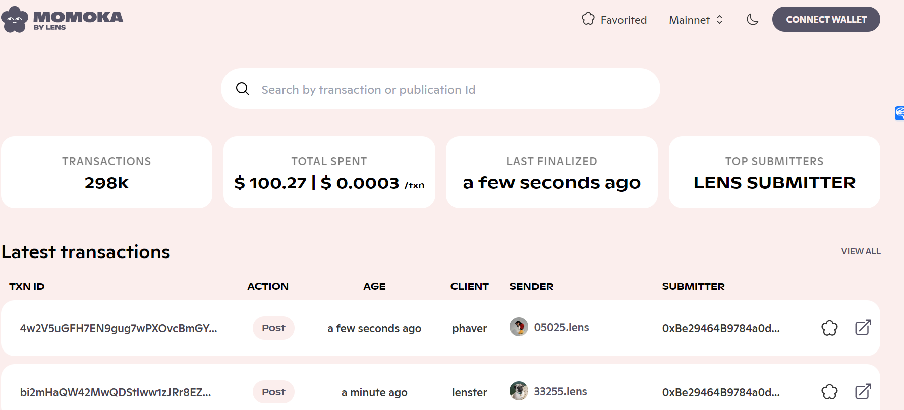 現在、Momokaがサポートする取引には、コンテンツの出版、コメント、ミラーが含まれている。Momoka Explorerによると、6月27日までにMomoka上で完了した取引件数は29.8万件で、総チェーン上取引費用はわずか100ドルである。