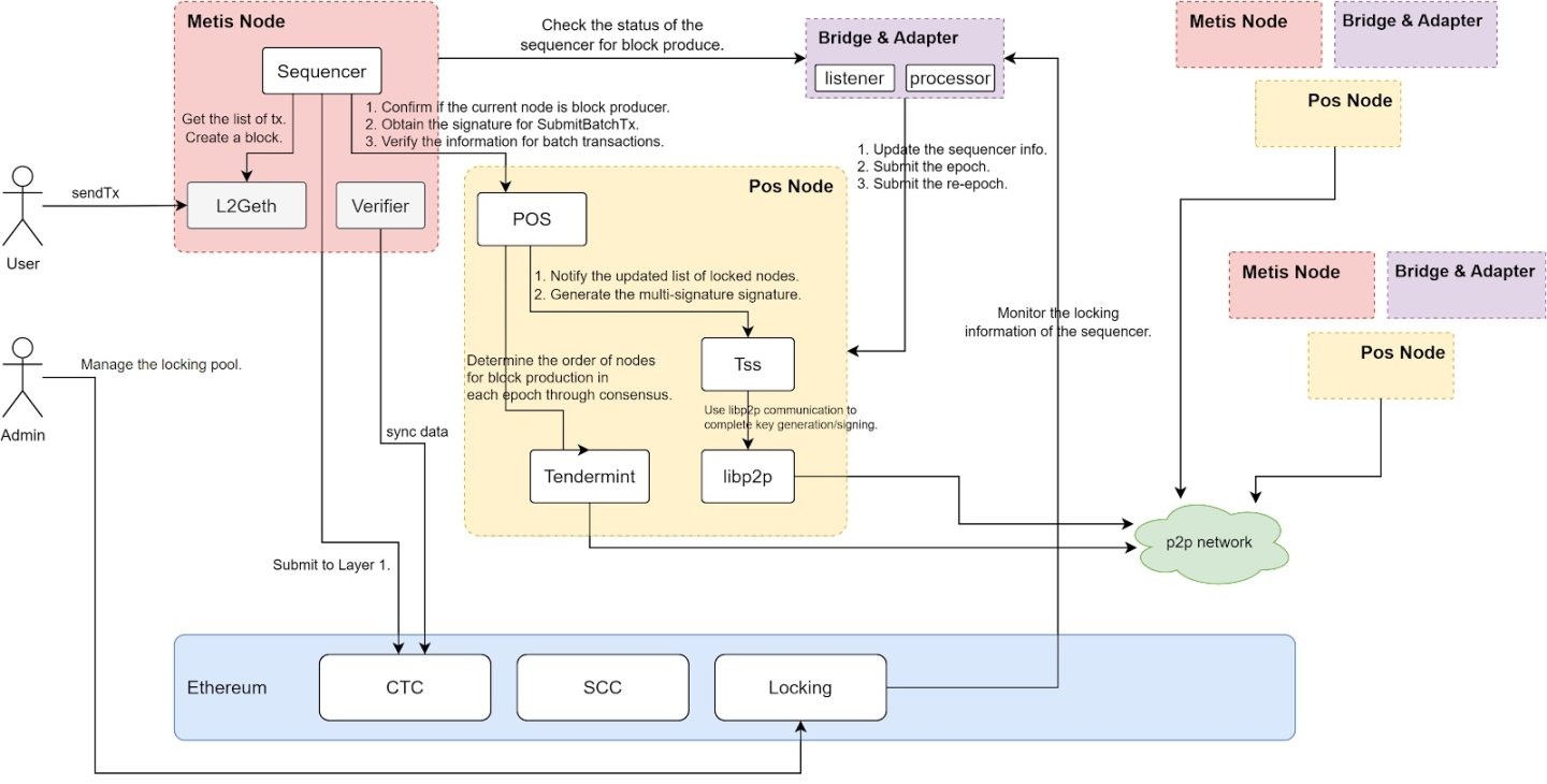 Metisの設計では、まず管理者(Admin)の役割があります。名前の通り、管理者はルールの制定者であり、分散型システムの重要なパラメータを設定する責任があります。これには、条件を満たすシーケンサーをシーケンサー池に含めることや、ブロック報酬のリリース速度を設定することが含まれます。