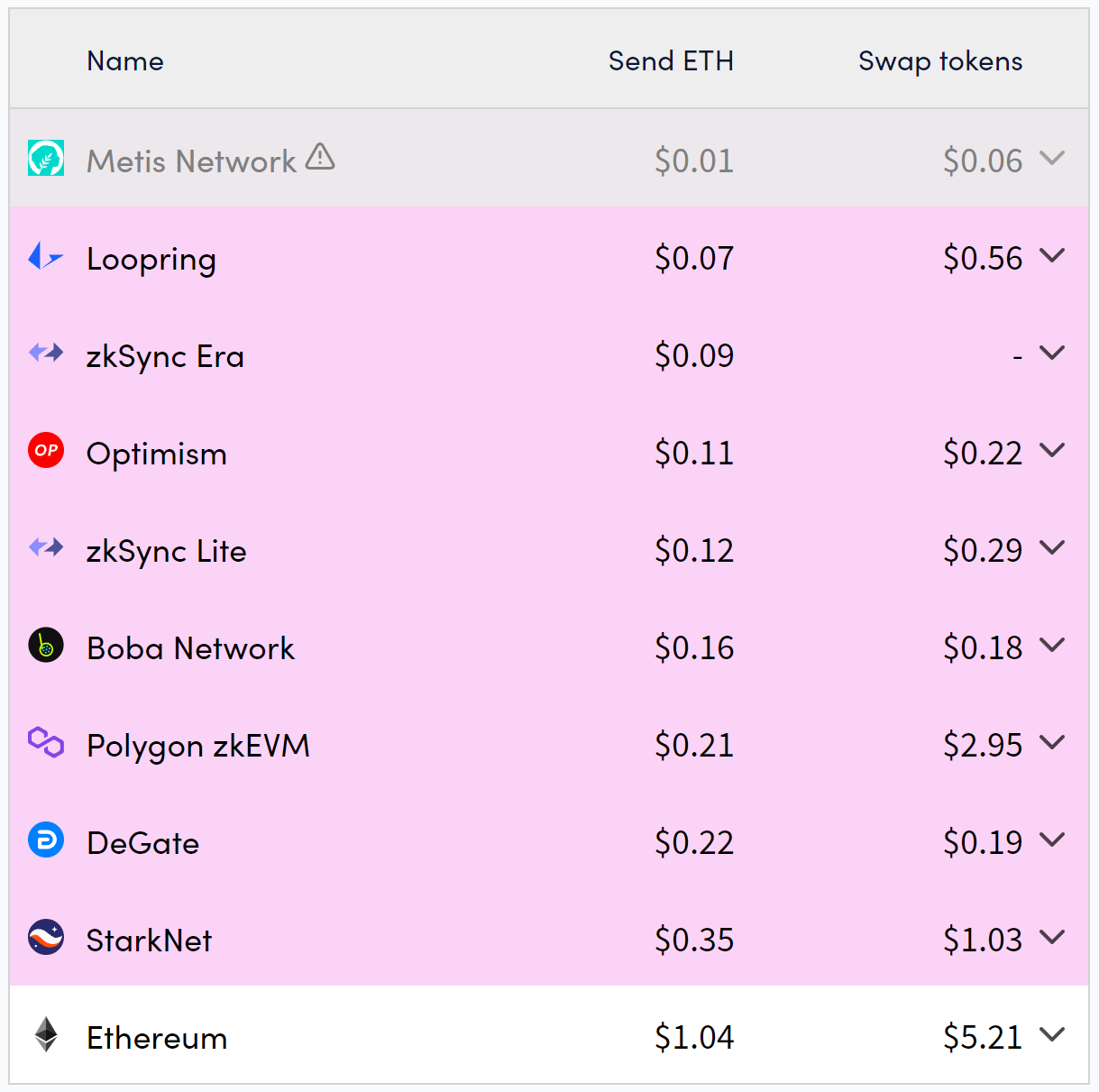 エコシステムへの参加コストを下げることは、良好なユーザーの評判を積み重ねることができます。ハイブリッドロールアップの巧妙な設計により、Metisエコシステムの取引体験は効率的で安全です。さらに、Metisは分散型ストレージMemoLabsを統合しており、取引手数料はOptimismやArbitrumに比べて十数倍低く、ETHの送金は$0.01未満です。将来的にはMetisがDA層をETHメインネットに変更することで取引手数料は上昇する可能性がありますが、それでも低廉な範囲内に留まり、取引の安全性はさらに向上します。