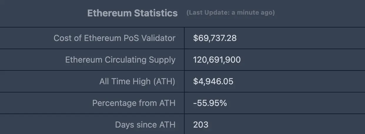 ETHUSD:現価格$2,178.50、歴史的最高価格$4,946.05、最高価格からの下落率約55.95%