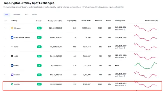 *소송에 직면했음에도 불구하고, * KuCoin 은 여전히 상위에 위치, 출처: Coinmarketcap