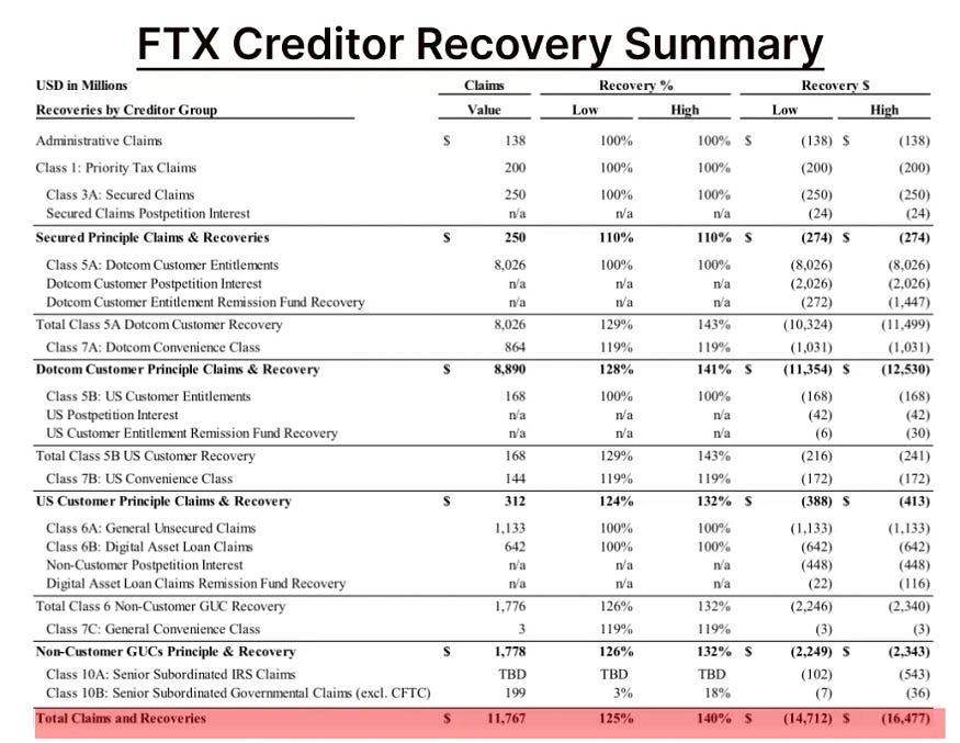 현재 FTX는 채권자에게 160억 달러를 상환할 계획이라고 합니다. 현재 발표된 보상 계획에 따르면, 특별한 일이 없다면 올해 4분기(또는 2025년 1분기)에 160억 달러 중 일부가 암호화 시장에 재투입될 가능성이 있습니다.