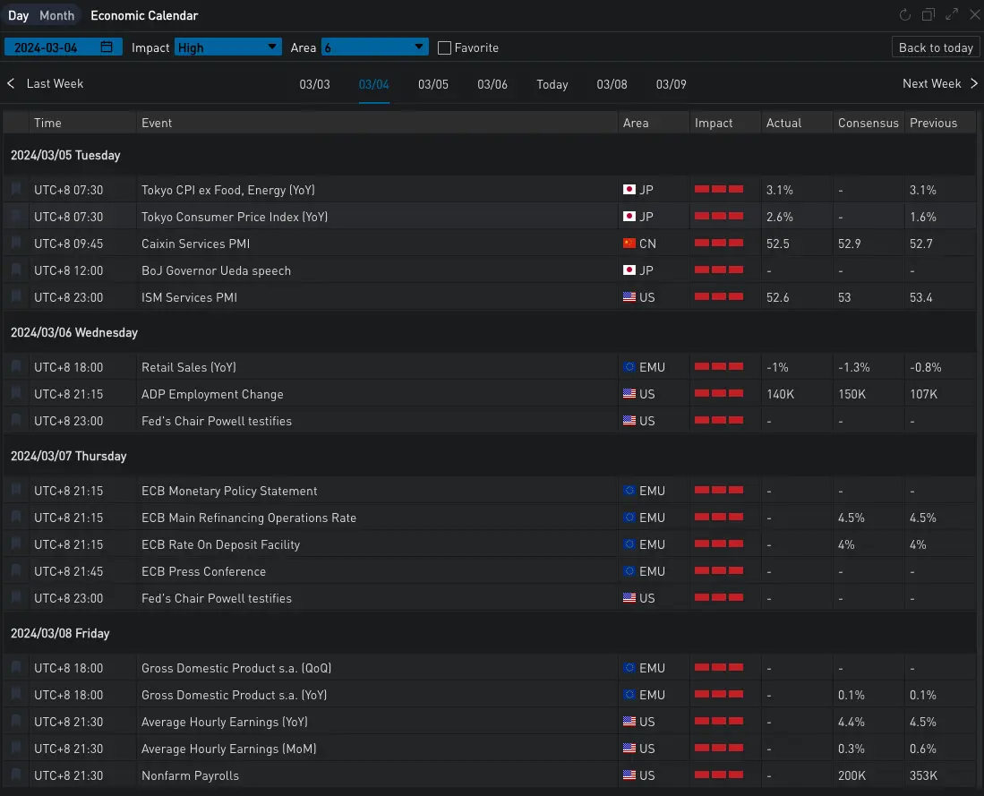 昨日(6 MAR)美聯儲主席鮑威爾發表談話,重申了降息取決於接下來的經濟走勢,美聯儲需要對通脹更有信心才能降息的觀點,同時提到了可能對銀行業資本金改革計劃進行重大調整。美聯儲卡什卡利表示他的基本預期是不再加息,但如果通脹比預期更加根深蒂固,美聯儲將首先考慮延長高利率政策的時限,並且進一步表示,如果經濟表現良好,那為何要降息?數據方面,美國 2 月 ADP 就業人數錄得 14 萬人,創下去年 12 月以來的最大漲幅,私有企業增加 14 萬個就業崗位,大幅高於疫情前的 5 萬平均值。